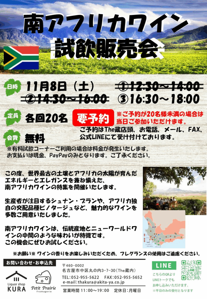 【予約受付中】南アフリカワイン試飲販売会 (名古屋)